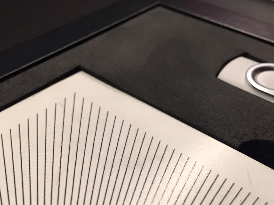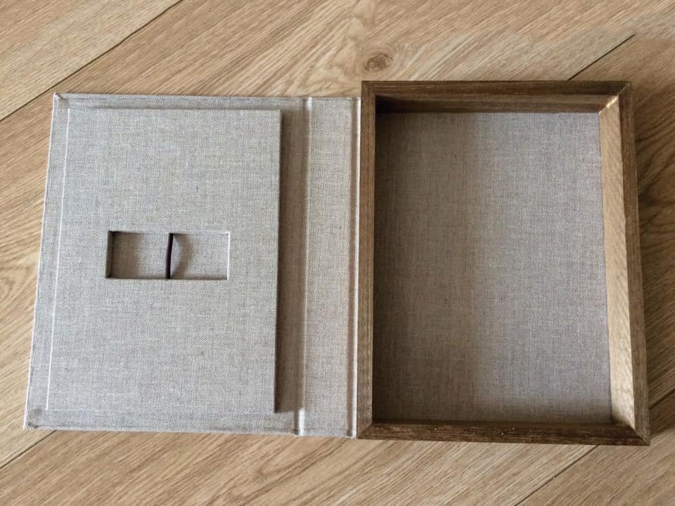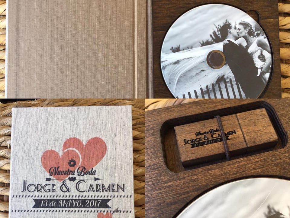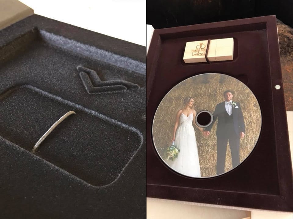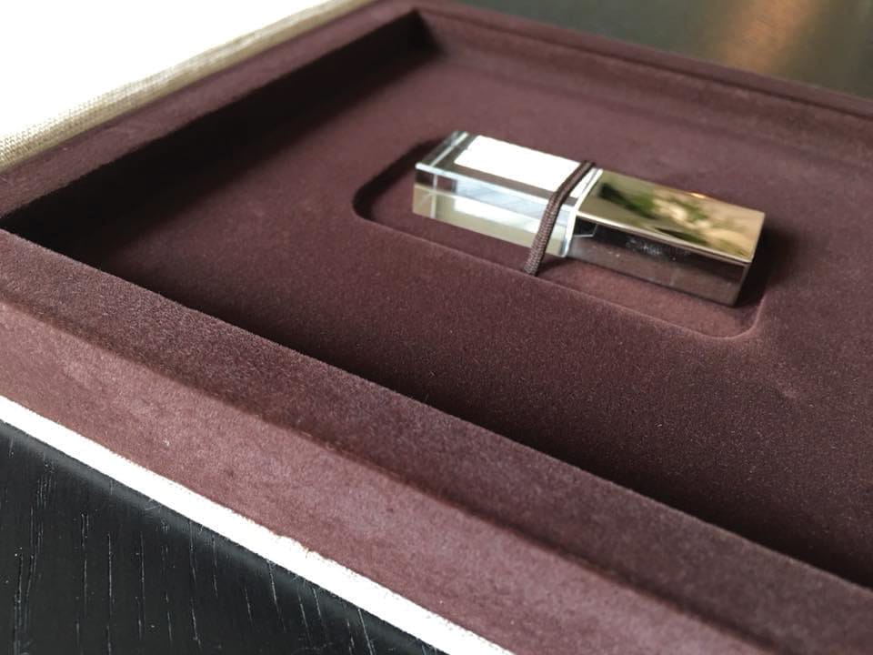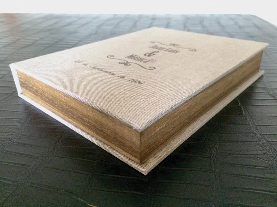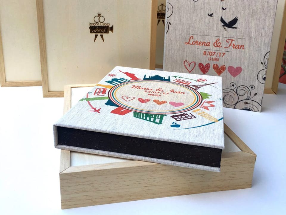 Basado en el estuche de DVD convencional, con unas medidas aproximadas de 14×25,3cm, admite acabado con portadas fotográficas mate y brillo o encuadernado en tela como el lino. En el interior podemos combinar distintas bandejas en función al soporte que queramos entregar.