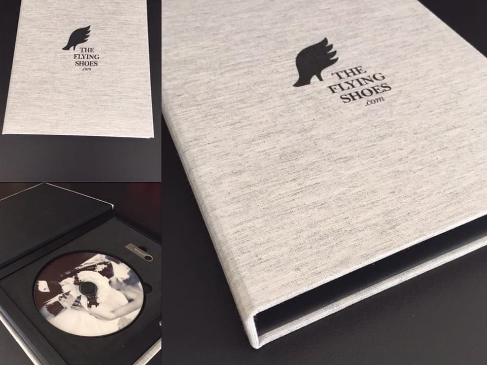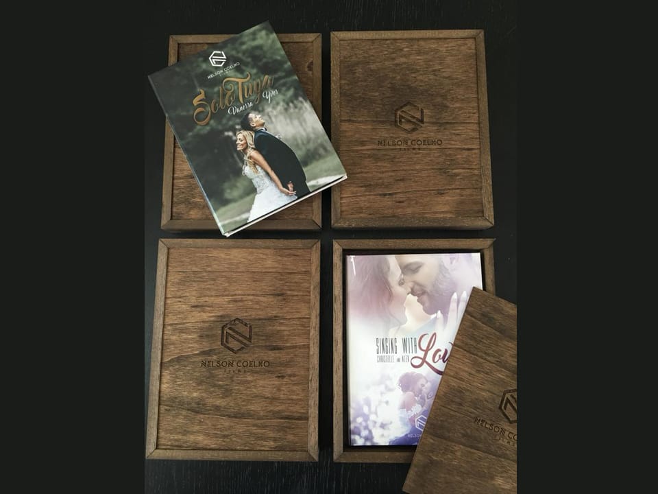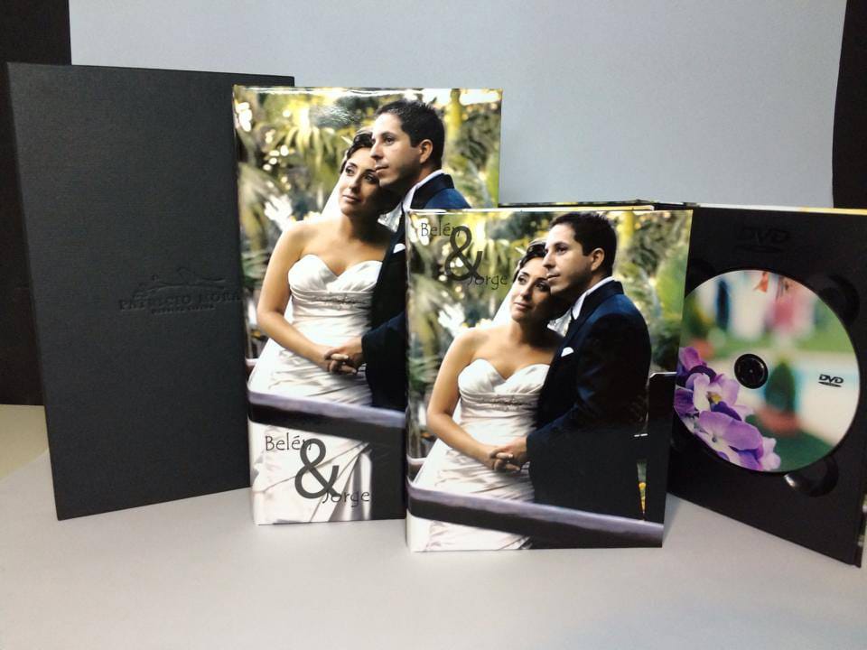 Basado en el estuche de DVD convencional, con unas medidas aproximadas de 14x19cm, admite acabado con portadas fotográficas mate y brillo o encuadernado en tela como el lino. En el interior podemos combinar distintas bandejas en función al soporte que queramos entregar.